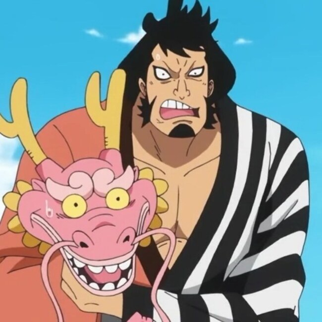 This is a picture of Kin'emon, a fictional character, one of the servants serving the Kouzuki clan, nicknamed "Fire Lake" Kin'emon in the One Piece manga. Kin'emon's appearance matches the stereotype of the samurai found in ancient Japan. His outfit consists of a gi-samurai with black and white stripes on the left and orange on the right. The product is suitable for people interested in the Kin'emon character.